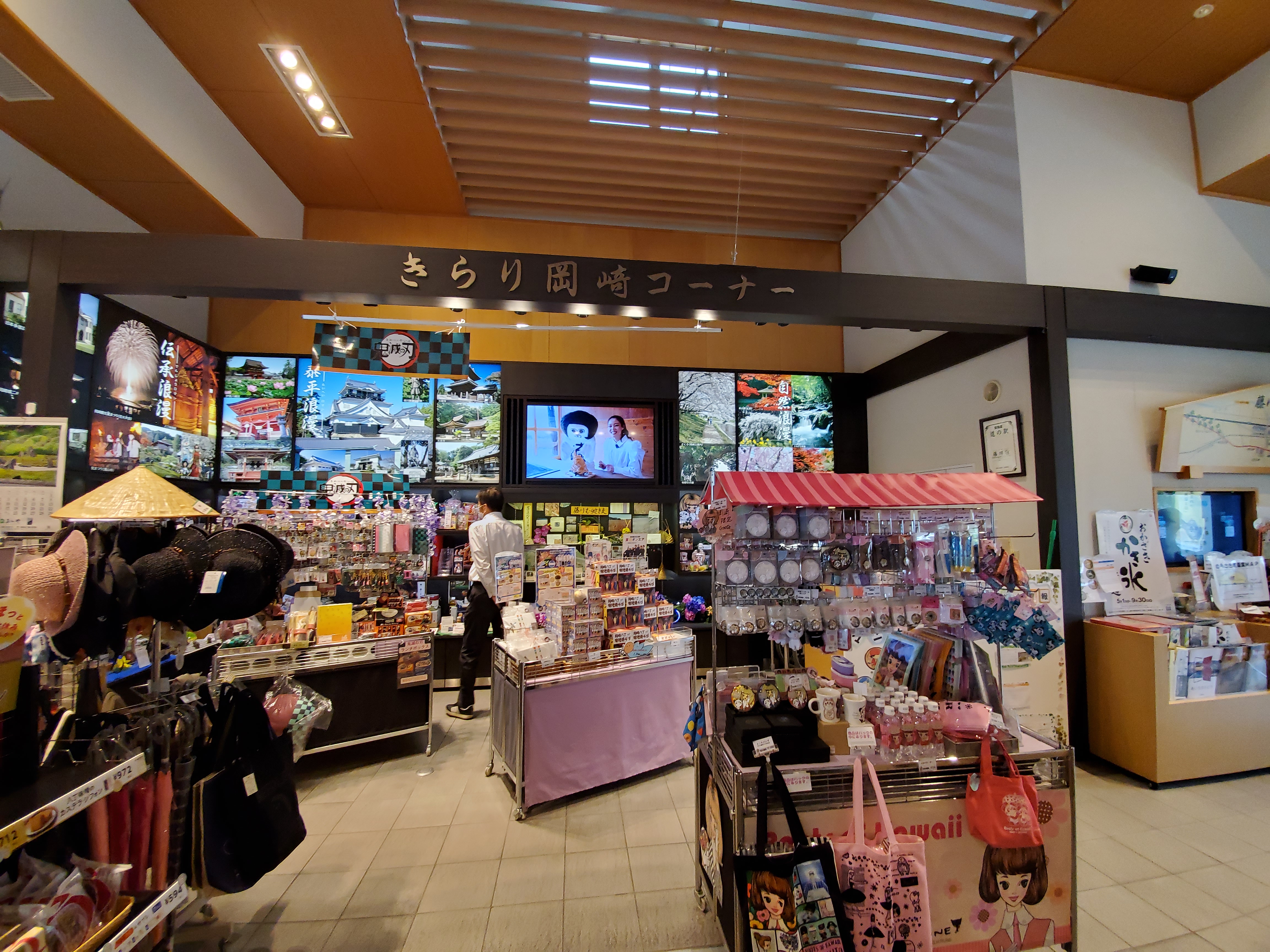 岡崎の観光スポットや、特産物の展示やそれらを扱う市内のお店などの情報も提供しています。大好きな"かりんとう"を何種類か買い物カゴに入れたついでに、並んでいた"うなぎパイ"を手に取ろうとしたら、「なんで、ここで買うの?」のカミさんの言葉に、「確かに」と、そっと元に戻す私。でも、どうして並んでいるのだろう? 岡崎と浜松は家康つながりだからでしょうか。