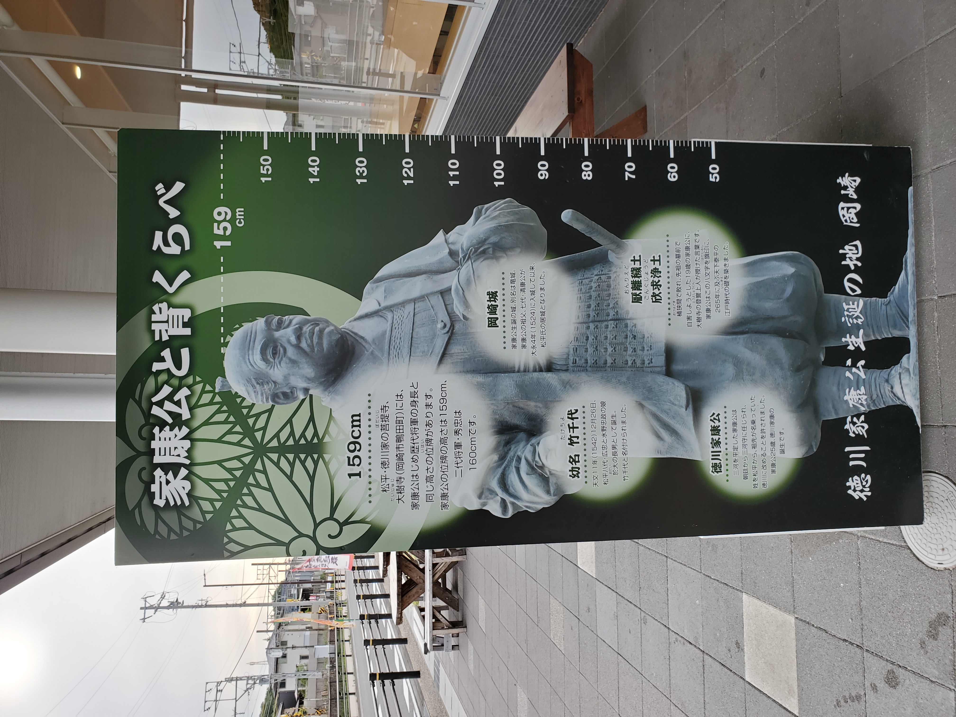 道の駅「藤川宿」の裏手で見つけた"家康公との背比べ"。159㎝といえば、ナグラさんと同じ。と思っていたら、本日のReCHECKを確認していて、彼の身長が家康公に1㎝足らないことに気づきました。まだまだ成長過程の彼だけに、今後が楽しみです。
