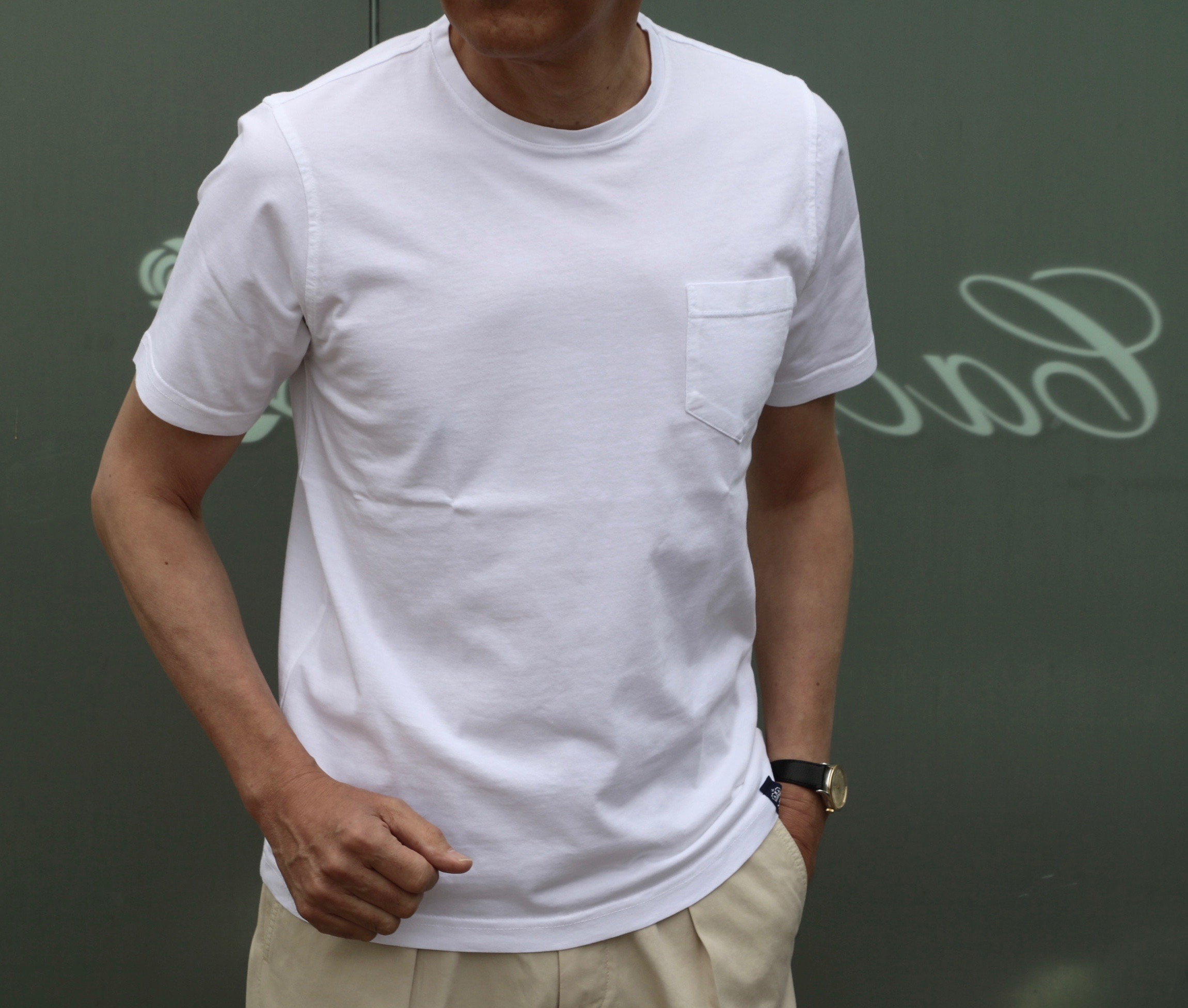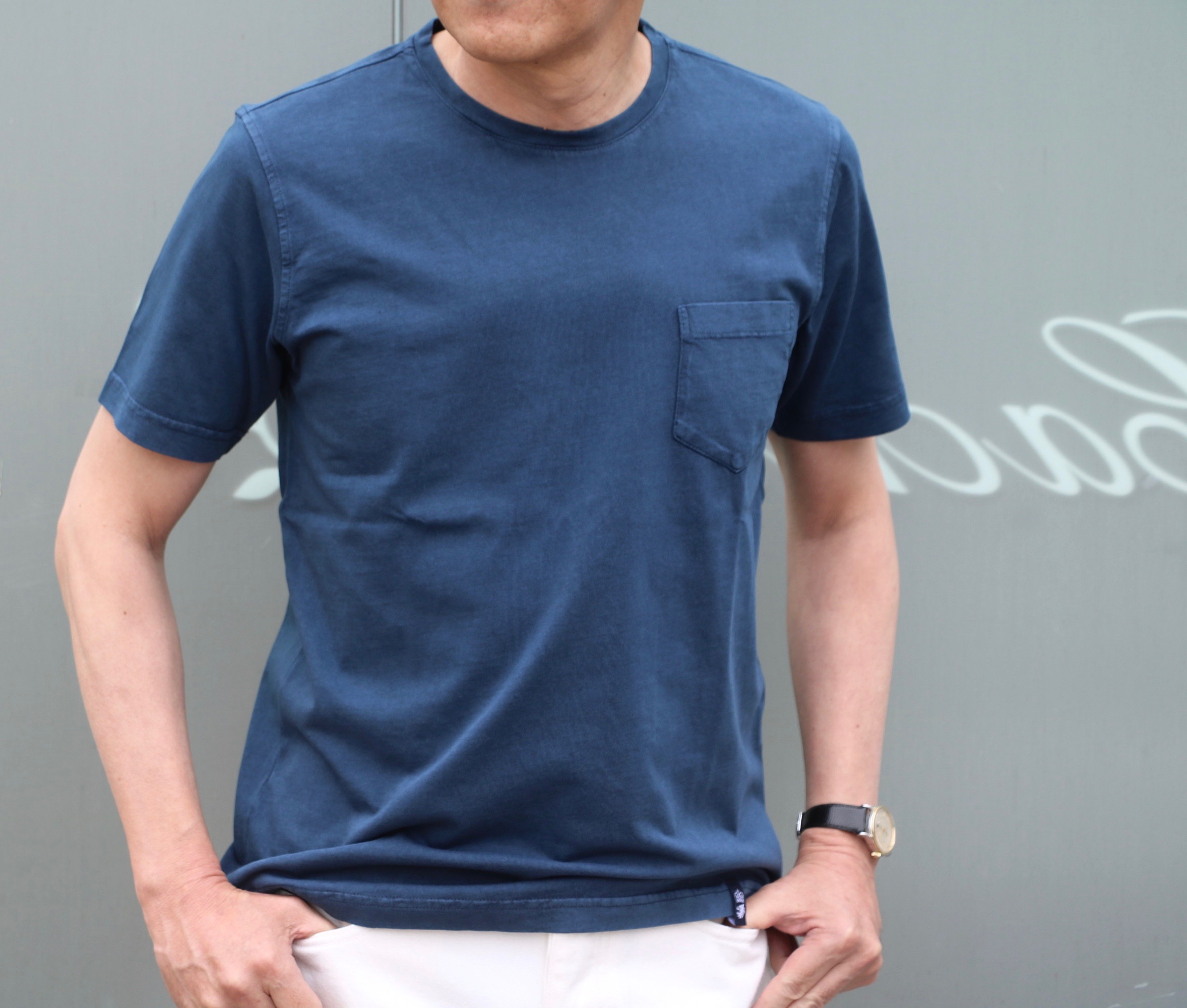 久しぶりに前置きが長くなりました。本日のご案内は、【Drumohr/ドルモア】のさりげない色物Tシャツを使って、ワークスタイルを表現していきます。