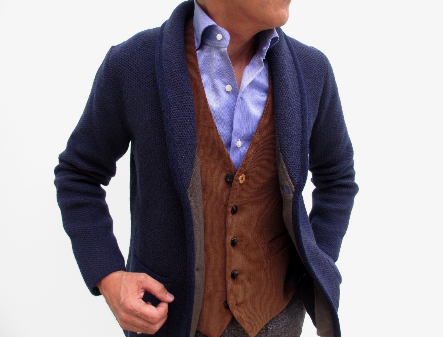 共地のジレもご用意しました。ラフなジャケットスタイルをエレガントに見せてくれるジレ。ジャケットと合わせて持っていると、いざと言う時に便利です。