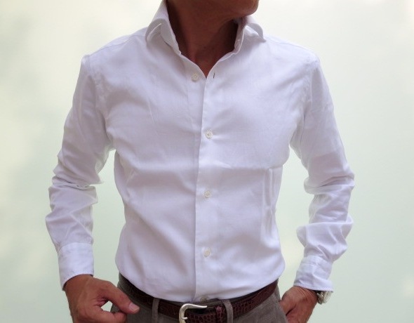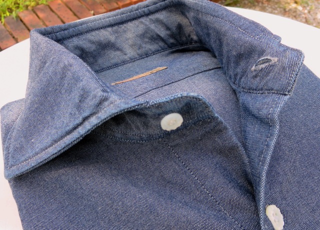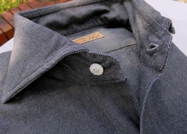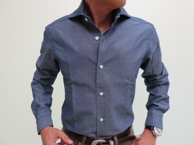 上のジャケットに合わせていたシャツが、こちら。フィナモレやバルバなどナポリのシャツにはないカジュアル感があります。