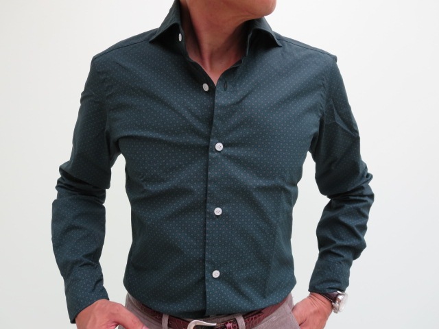 以前ご紹介の「CULTO」。ネックのジャストサイズ39を着用しておりますが、ボディはもたつかず、すっきりです。まさに私にとっては、痒いところに手が届く、至れり尽くせりのシャツなんですね。