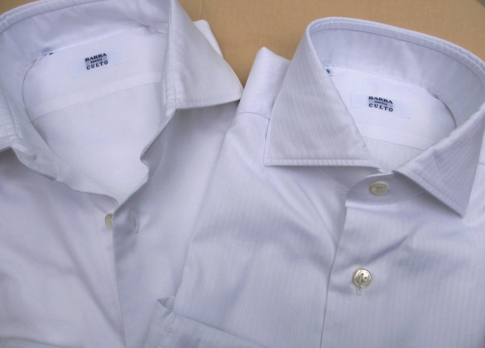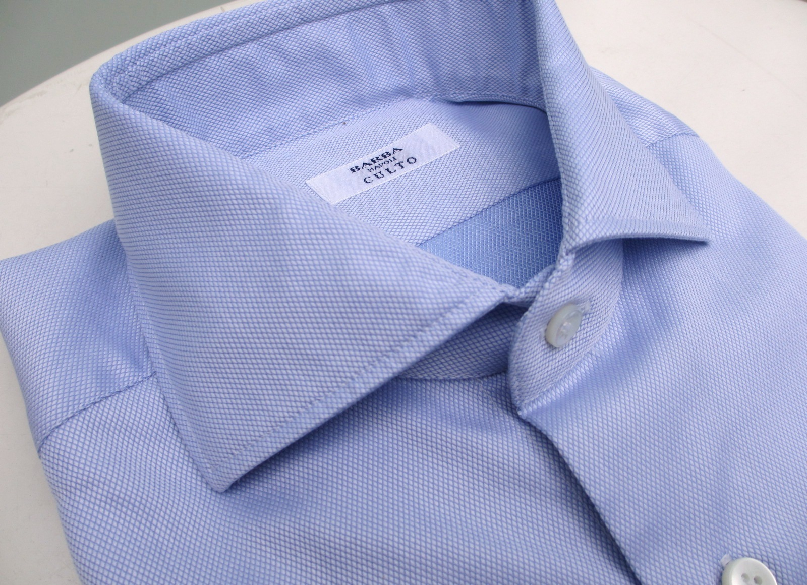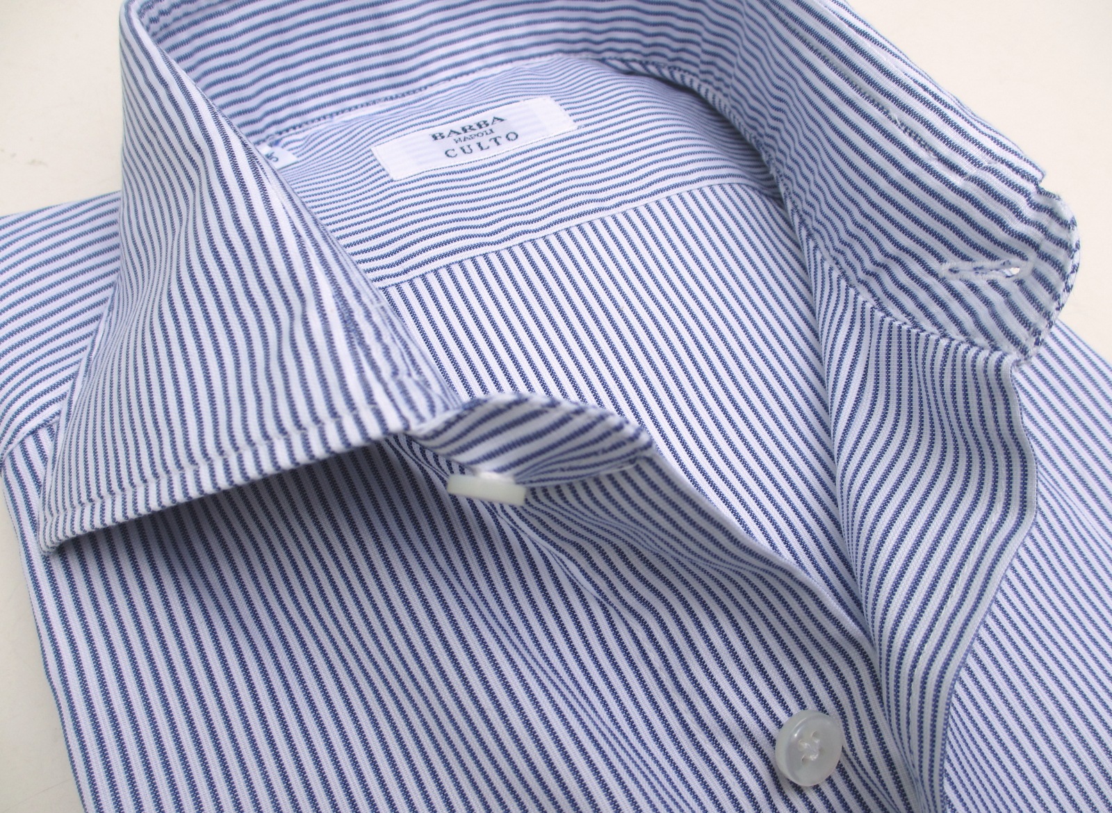 イタリア語の「CULTURA=文化」が由来の「CULTO」。伝統のナポリスタイルを髣髴させるシャツモデルとして登場です。基本背設計はドレスシャツですが、従来と異なるのは、製品に一旦、洗いを加えた後、さらにプレスをかけるという手間のかかる工程を踏んでいることです。糊の利いたドレスシャツでは固すぎる、もう少し肩の力を抜いてきたい...そんな方に最適。またボディも【BARBA/バルバ】のモデルの中では最もスリムなシルエット。従来のドレスシャツでは、ネック(首)寸に合わせるとボディが大きすぎる方。逆に言えば、ボディに合わせるとネックが閉まらない、そんな方にもぜひお勧めのモデルです。