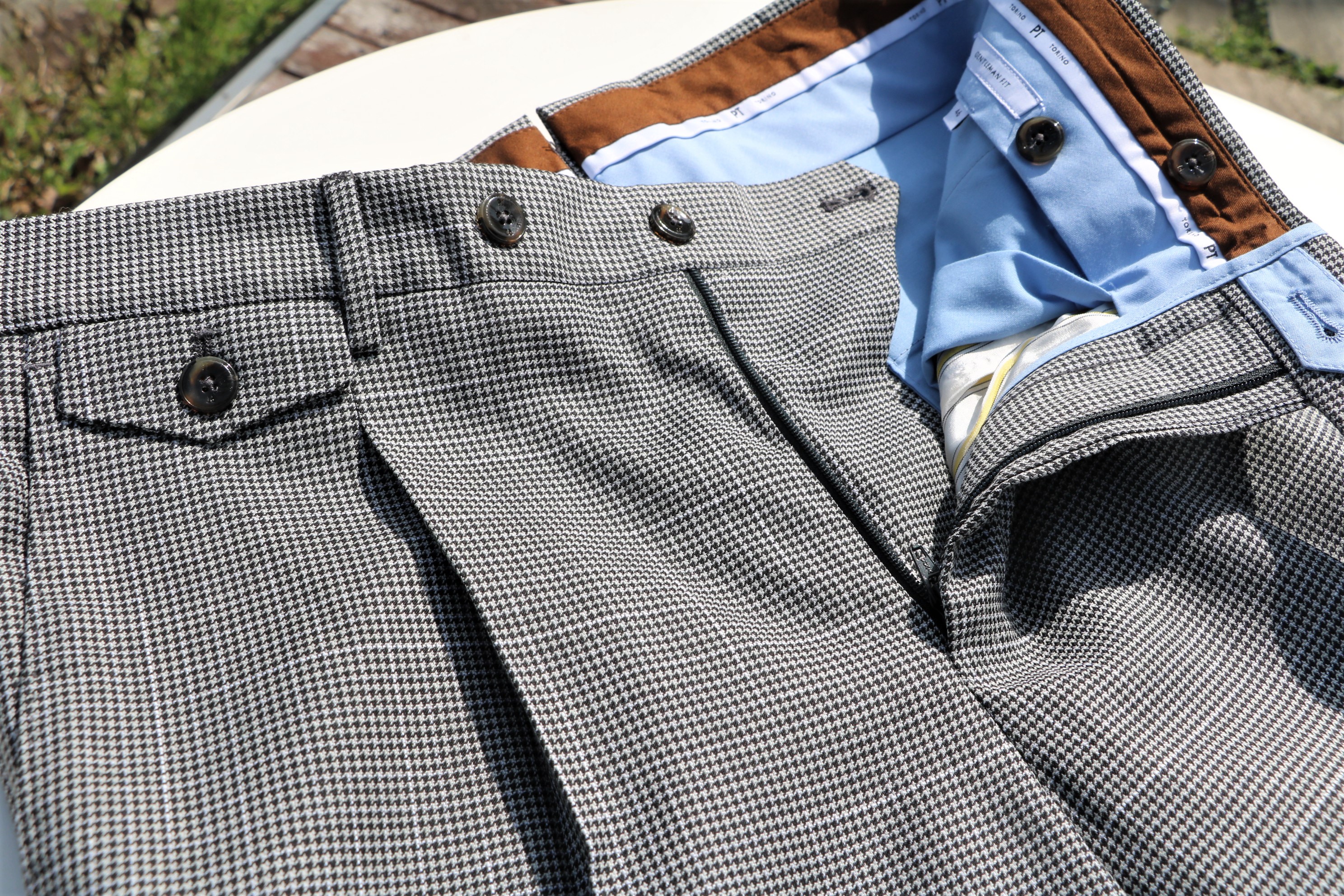 こちらの【PT TORINO/ピーティートリノ」のパンツは、3月27日のブログにてご案内させていただいたTAGLIATORE(タリアトーレ)のジャケットに合わせていました。