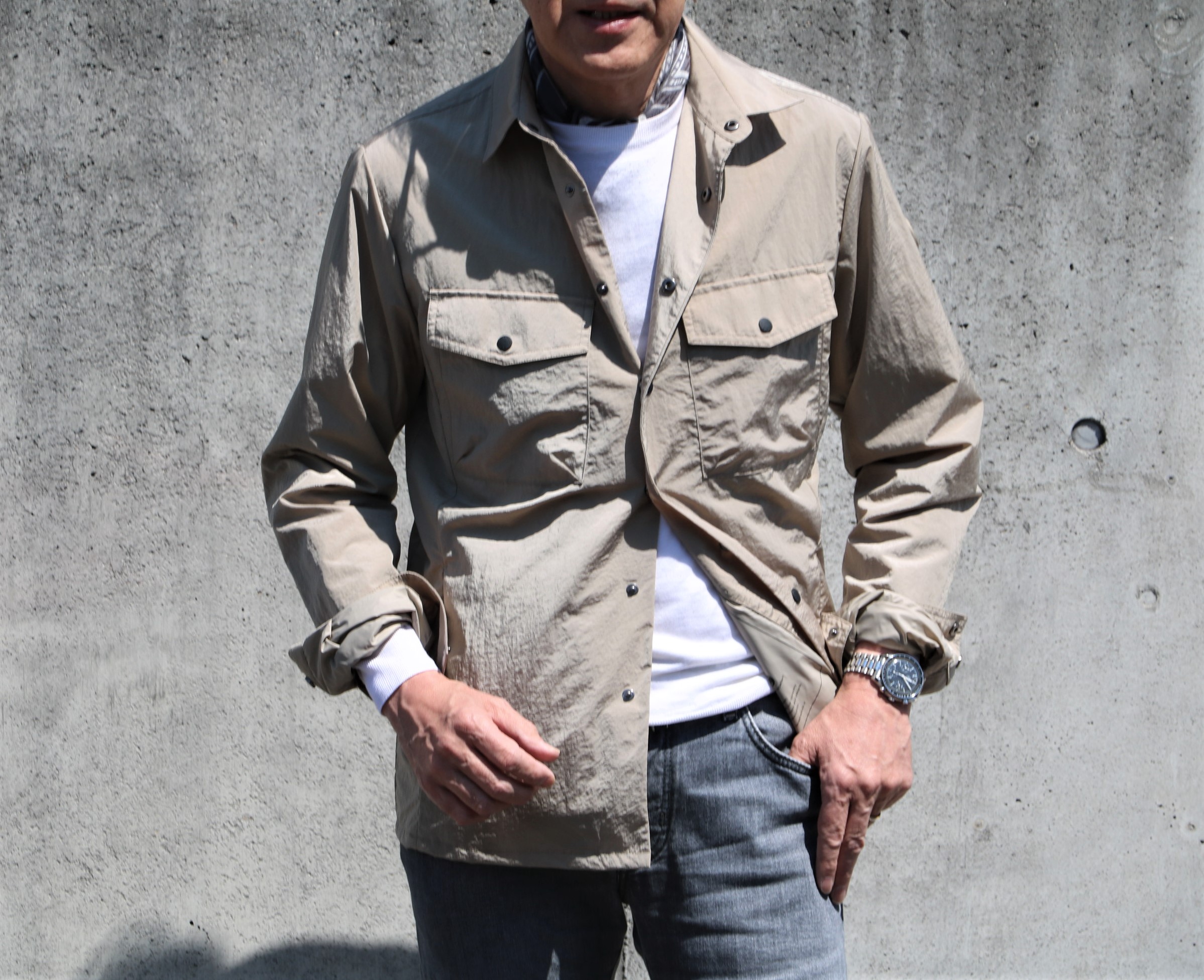最後に入荷してきたモデルは、軽さが魅力の「RIBERTO-AMC」。スーツやジャケットの裾がきれいに隠れるほどのミドル丈ナイロンコートです。今日のようなrain/レインや花粉や黄砂などのdust/ダスト、風のwind/ウインドを防ぐ生活必需品です。
