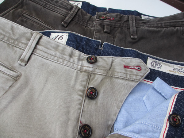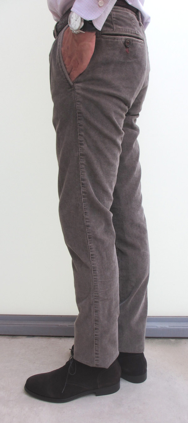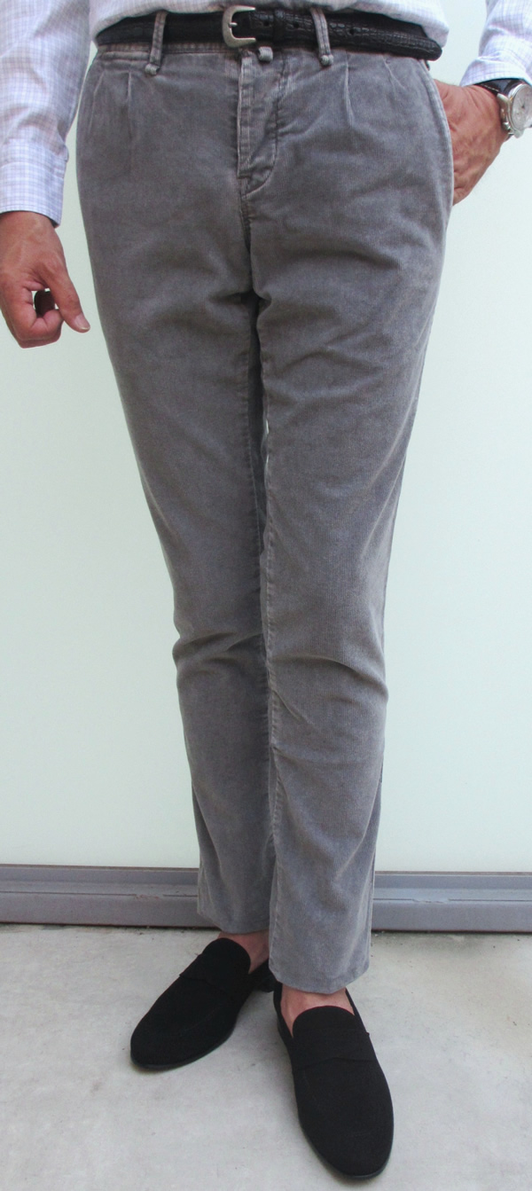 昨年に比べると、やはり甘い色調の生地が増えましたね。大好きな素材と色、そして甘い色気が加わった今季のコーデュロイ。更にフロントにツータックの入ったニューモデル「Pince」は、ほんの少しだけウエスト回りを甘くしますが、全体にはきりっとしたシャープなモデル。そんなには甘くありません・・・でした。