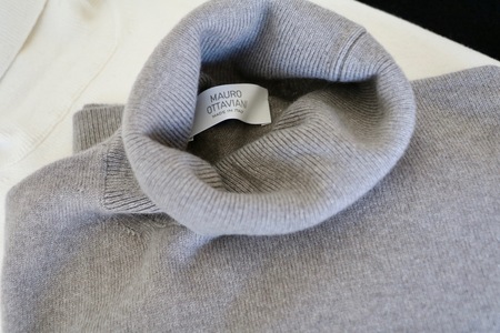 クオリティの高さの割にお値打ち。ならば、カシミア100%でやれば良いのですが、最近、販売力に自信がなくて...。いやいや、ウール・カシミアでも十分な魅力があります。このドルチェヴィータで37,000円なら絶対に完売してしまう、そんな自信を持ってお勧めするニットブランドです...は、ご案内の際に書いた文。完売とまではいきませんが、ブランドを知らない方でも、自然と手が伸びてしまい、発色の良さと手触り、そしてたぶん価格を見てご購入される方の多いニットです。このタートルネックセーター、モノと季節が一致した今、さらに力を入れてお勧めさせていただきます。