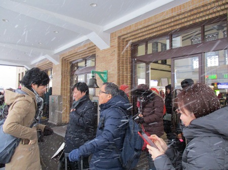 ウールコート好きの私も、雪の舞い散る日に選ぶのは、ダウンジャケット。この冬、初めての出番となりました。かつて12月のブログの一部を占めていた内容がスタッフの慰安旅行でした。隔年で出かけていたのは、北海道の小樽と札幌。一泊二日の強行日程でしたが、旅行会社の友人の中身の濃い内容に皆が満足しておりました。旅の魅力は、行き先での楽しい事はもちろん、出かける前のワクワク感。何を着て行こうかなんて考えるのもその一つです。当然、12月の北海道ともなれば、ここ岡崎よりも寒い。いつ吹雪くかもわからないし、雪道で滑って転ぶかもしれません。そういえば、あの慎重なタカイちゃんでさえ、すってんころりんでした。そうなると自然に選ぶのがウール系ではなく、ナイロンのダウンジャケットに。過去の例を挙げてみましょう。