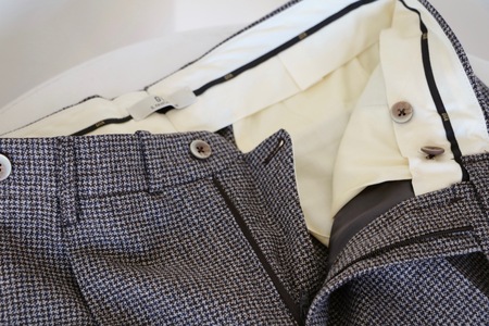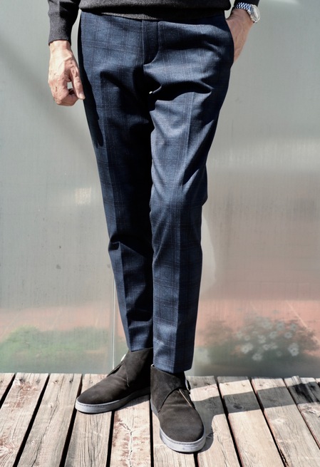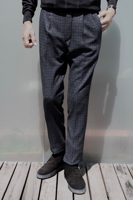 様々なコーディネートに必要なのが、この「BYRON」ウール ガンクラブチェック柄パンツも同じ。こちらもサイズ46が売り場から消えるのは早かった。それだけセレクトが良かったと自信をもつべきですが、コーディネートのためにも購入すべきだったなんて、ちょっぴり後悔です。同じ生地があり、価格も上がらなければ、来季もオーダーを考えないわけにはいきません。トレンド感のある上品なパンツです。