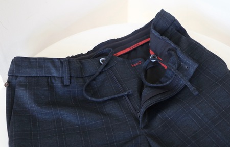 コンフォータブルな「DAVIDE」機能素材チェックイージーパンツ。こちらも、いつの間にか残りわずかです。ポリエステル・レーヨン・ポリウレタンの機能素材を使った、家庭での洗濯可能なイージーパンツ。時代が求めているパンツなののでしょうね。ゴルフや旅行、中にはビジネスでお使いになられる方も多いようです。