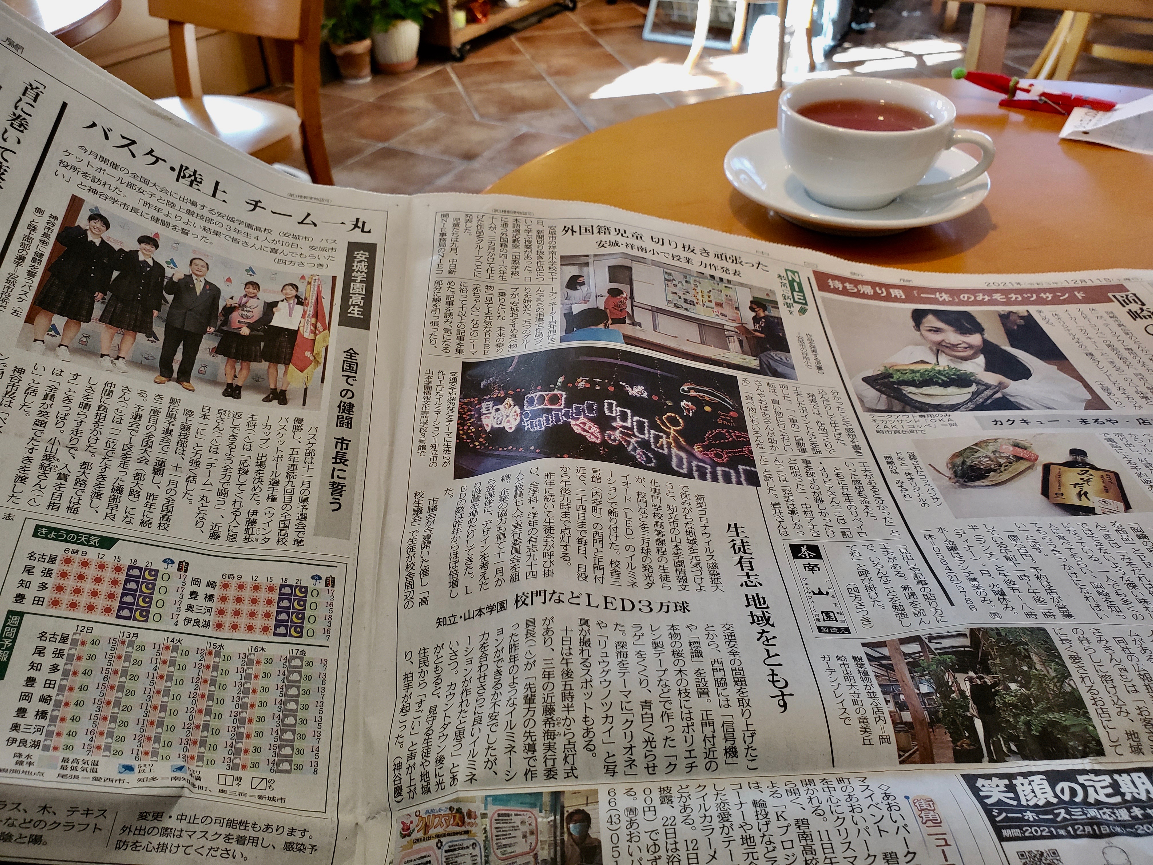 昨日のブログで予告させていただいた、ここ竜美丘ガーデンプレイスに新しくオープンした商業施設"5FACTORY"の記事。中日新聞の三河版に載っていました。どこ、どこ、どこに?写真右端です。ちっちゃい!! ここ岡崎の地域活性化に長年にわたり貢献しているんだから、もっと大きく扱ってくれても良さそうなのに、なんて文句を言ってはいけません。ただ、同じ紙面、左上の「バスケ・陸上 チーム一丸」の写真中央に高校の同級生が市長面して、いや失礼、彼は正真正銘、安城の市長です。こっちの写真の方が大きい。いやいや競ってどうする。彼はメイン。私達は通行人のエキストラのようなものですから。