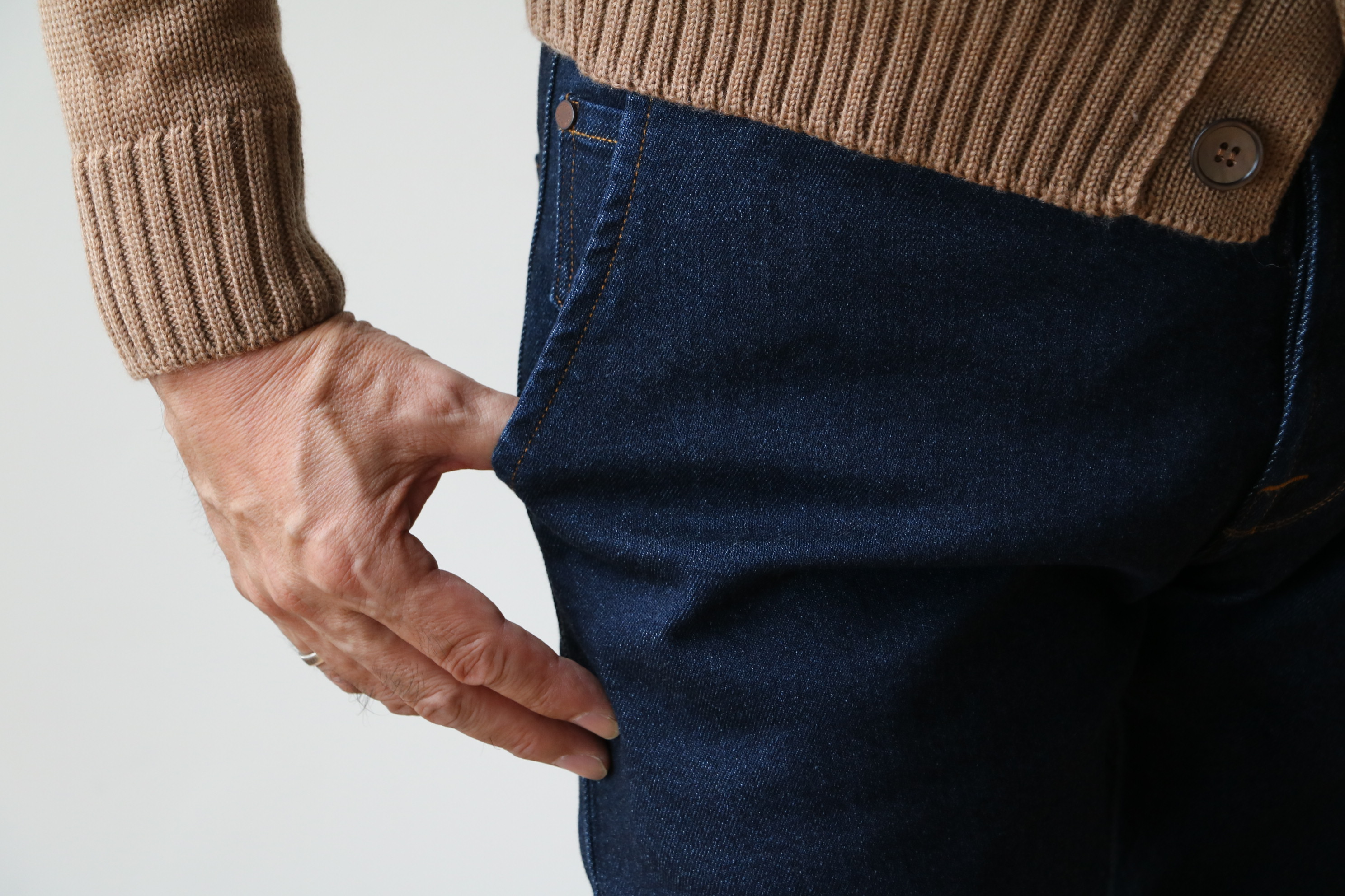 ウォッシュドのブルーデニムに、ステッチとパッチのベージュが柔らかな表情を作り出します。重ね着をする季節に、また白のTシャツやシャツにさり気なく合わせることのできる、主張しすぎないジーンズが欲しい!! そんな思いでセレクトしました。