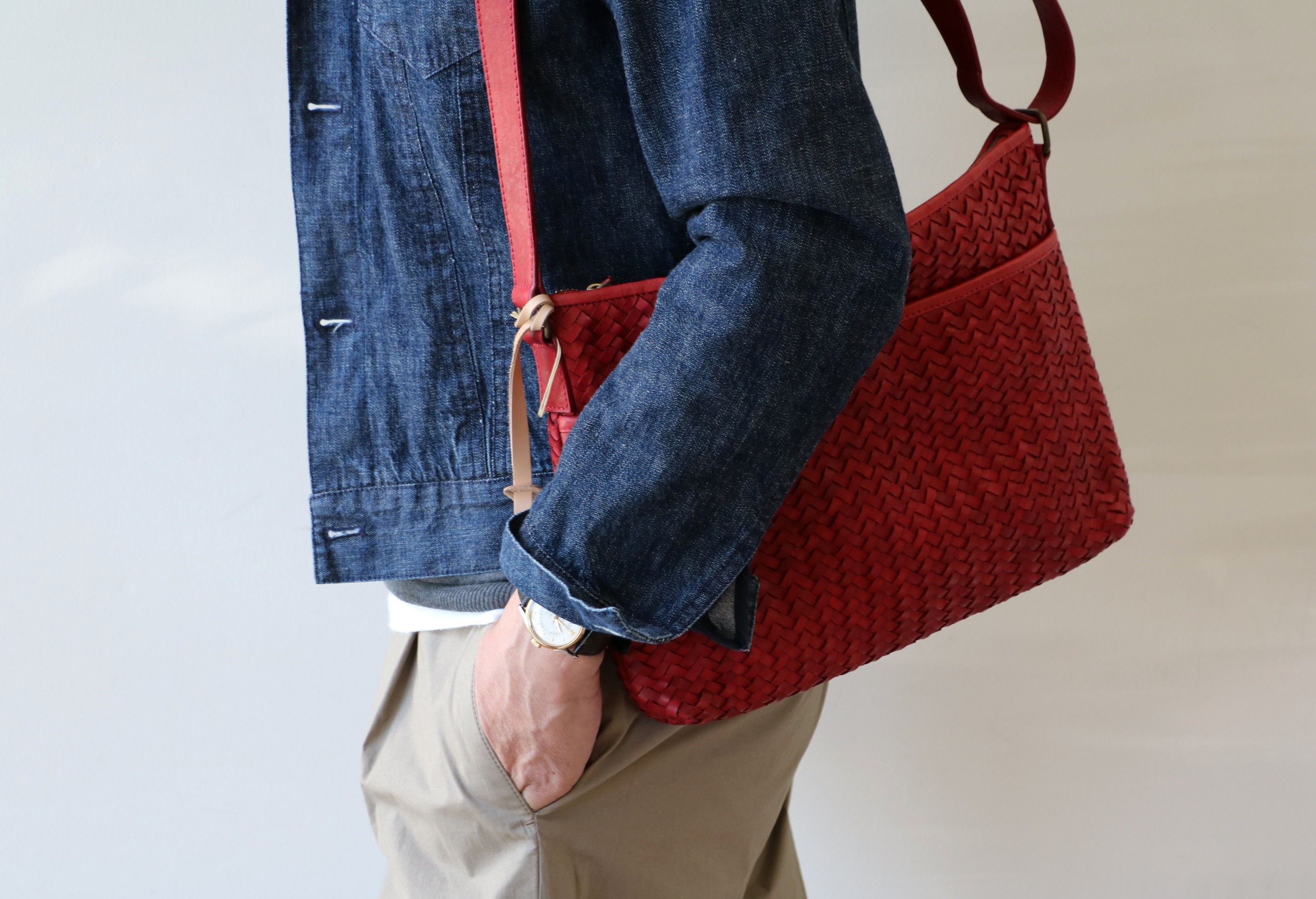 サマーコンフォートのストレッチコットン。魅力は、青の色合い。写真より、もう少し落ち着いた青ですが、ワークに見せない大人のインディゴブルー。ステッチのベージュと青の釦が、美しいハーモニーを奏でます。「ジージャン着ると、子供っぽく見えるんあだよなぁ」と言われる方、今回のセレクトはお勧めです。型はベーシックでも色や風合いには拘りたい...は、いつも展示会に臨む際の心構え。どこの展示会に行っても常に探しているのは、ワクワク感。どの商品も思い入れがありますが、特に色合いにときめいたのは、BOGLIOLI(ボリオリ)のジャケット。この【JACOB COHEN/ヤコブ コーエン】に共通する美しさがあります。宜しければ、再度ご覧になってください。
