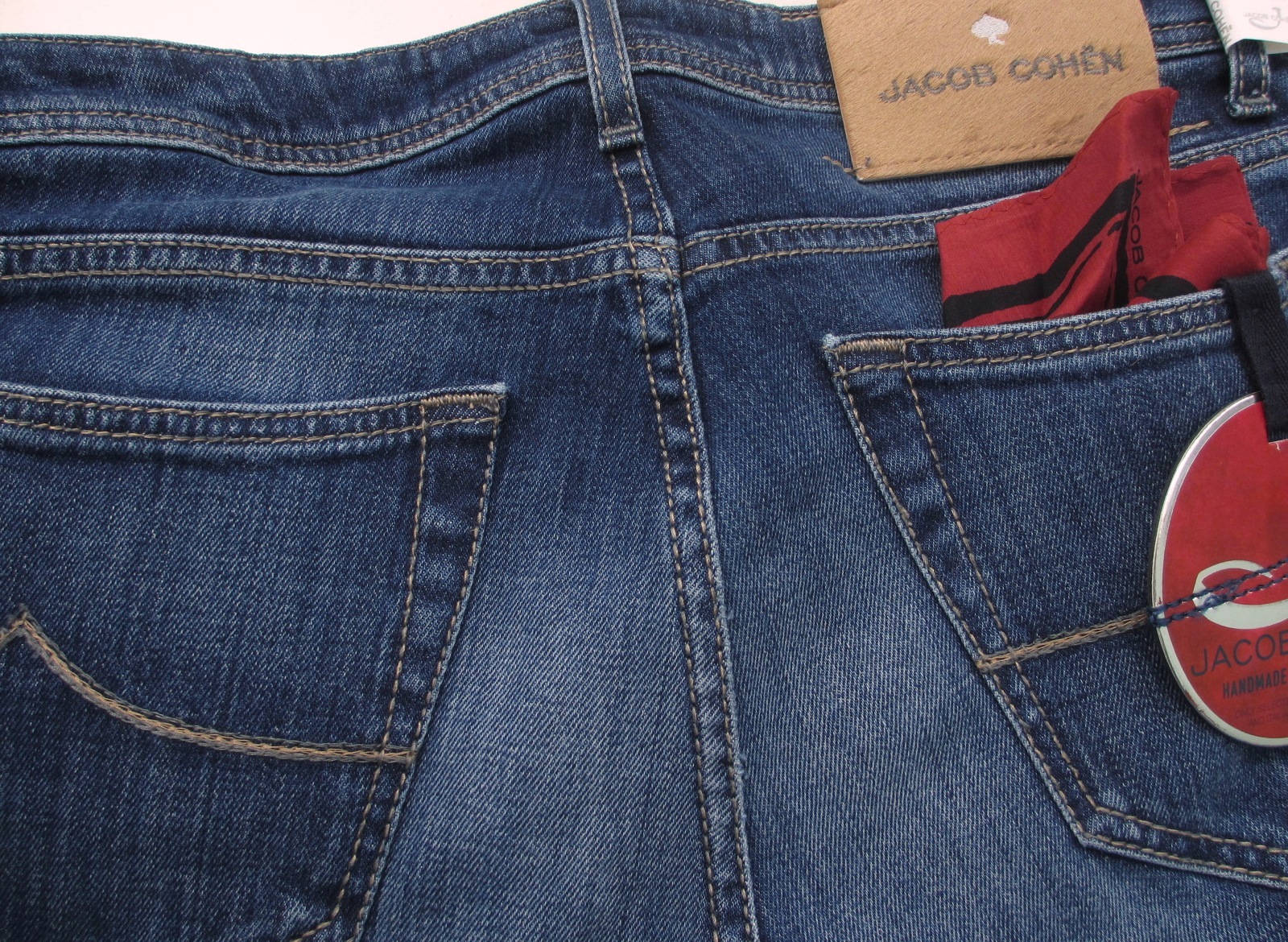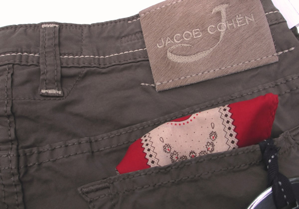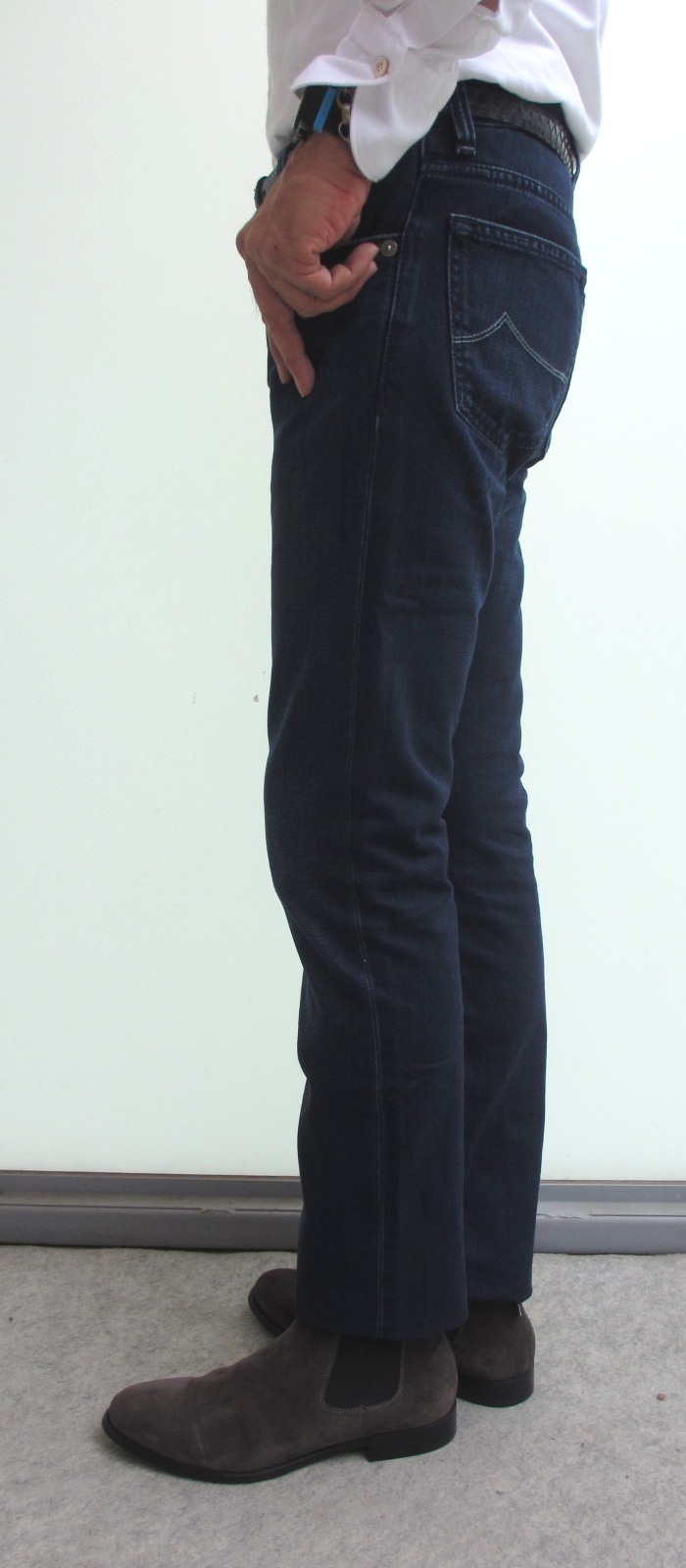 BOGLIOLI(ボリオリ)がアンコンジャケットの先駆者とすれば、大人が穿くジーンズとして一世を風靡したデニムブランドが【JACOB COHEN/ヤコブ・コーエン】。その爆発的な人気の秘密は、"仕立ての良いジャケットに合うジーンズ"をコンセプトに、ジーンズでありながらスラックスのように丁寧かつ繊細な仕立て。ジーンズ界の雄・リーバイス501をリスペクトしつつも、テーラードの国・イタリアのパンタローネを想像させる立体裁断とテーラードシルエットをあしらい、見事な美脚ラインを確立。しかもデニム地には、世界でも評価の高い日本の岡山からわざわざ輸入し、イタリアの工場で仕立てているという拘り。今までジーンズを穿かなかった大人たちをも魅了するのに時間はかかりませんでした。