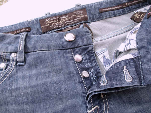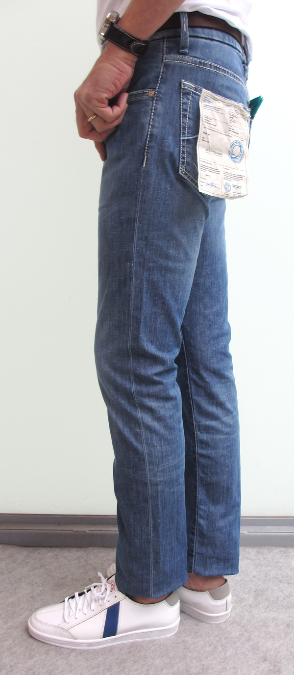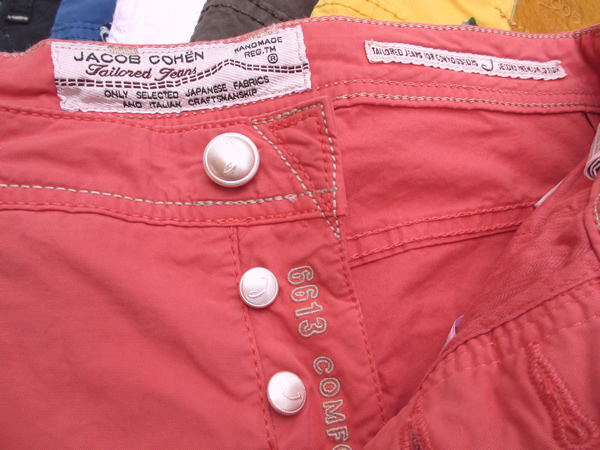 コットン100%のデニムらしい生地。フロントやシンチバック(尾錠)の釦には、【JACOB COHEN/ヤコブ・コーエン】の"J”ロゴが。控えめで、さりげない自己主張です。