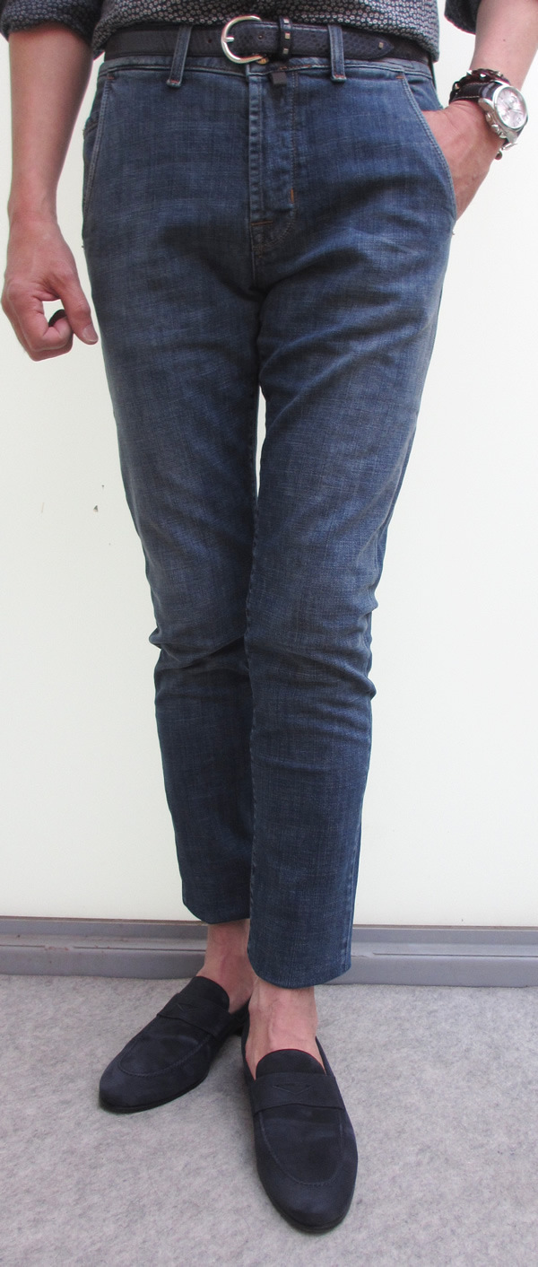 そんな慌しい時季に出番の多いのが、デニム。ホワイトは別として、気兼ねなく穿ける気軽さと季節を感じさせないアイテムとして重宝します。軽くジャケットを羽織れば、様になるデニム。そんな好都合で文句無しのデニムと言えば、【JACOB COHEN/ヤコブ・コーエン】。早速、ご紹介させていただきます。
