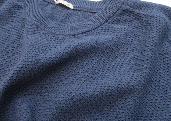 ジャージー編みの伸縮性は、スウェット感覚の気軽さがあります。ラグランスリーブの袖付けがさらにカジュアルな雰囲気に。平置きにした時より、着たほうが美しく見えるのも、マッシモマジックなのかもしれません。