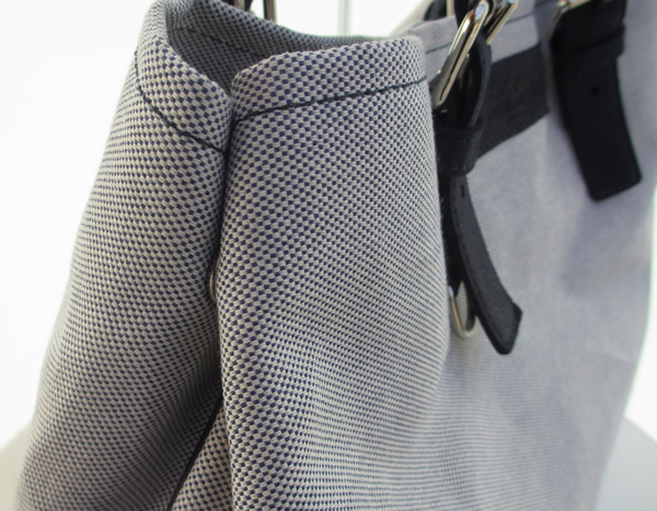 ネイビーとホワイトで織り成すキャンバスは、加工を加えずにクリアな表情です。レザーのネイビーとの色バランスも最高です。