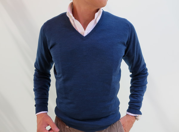 MODEL:KENDAL 30ゲージメリノウールVネックセーター