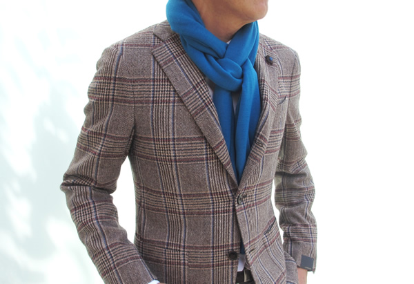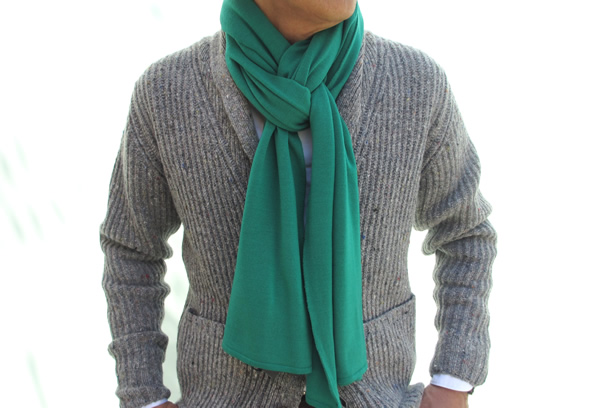 競走馬のように美しく着る必要はありません。こちらは、コーディネートに合わせて巻くだけです。30Gのニットマフラーは、色で勝負です。