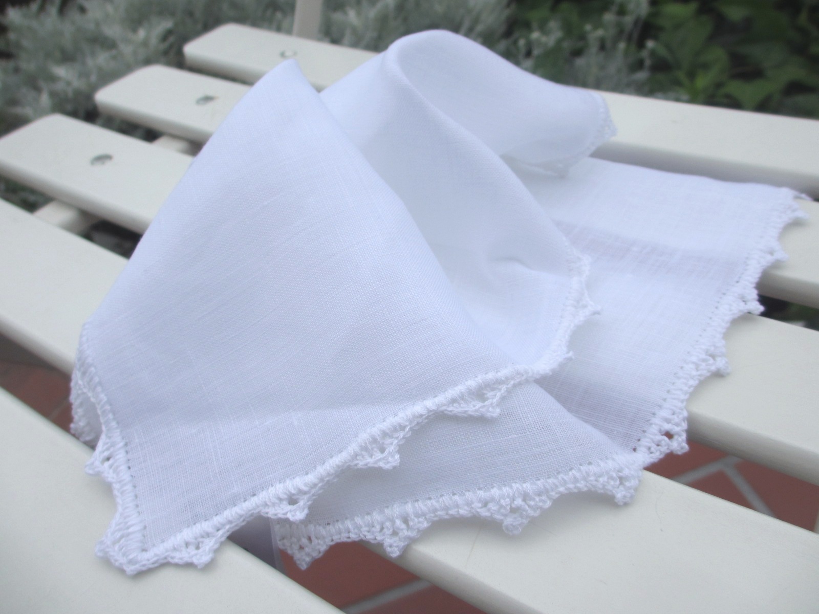 MODEL:リネン レース刺繍入りポケットチーフ