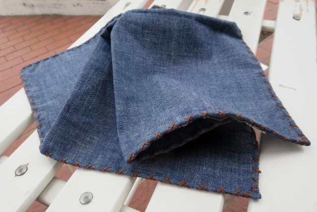 今回、コーディネートで使っているネッカチーフ。このまま、置き撮りでご案内するつもりでしたが、タカイがもっとアピールしたいとのこと。さすが巻物と言えば、彼。どんな写真が登場するのかわかりませんが、大いに期待できます。引き続き、ご覧ください。