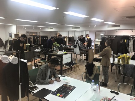 ちょっと脱線します。今年の2月に出掛けたスタッフ総出のバイイングの際の1枚です。各スタッフが不思議と吸い寄せられていったのは、フィリップモデルの展示されたブース。吸引力はピカ一です。