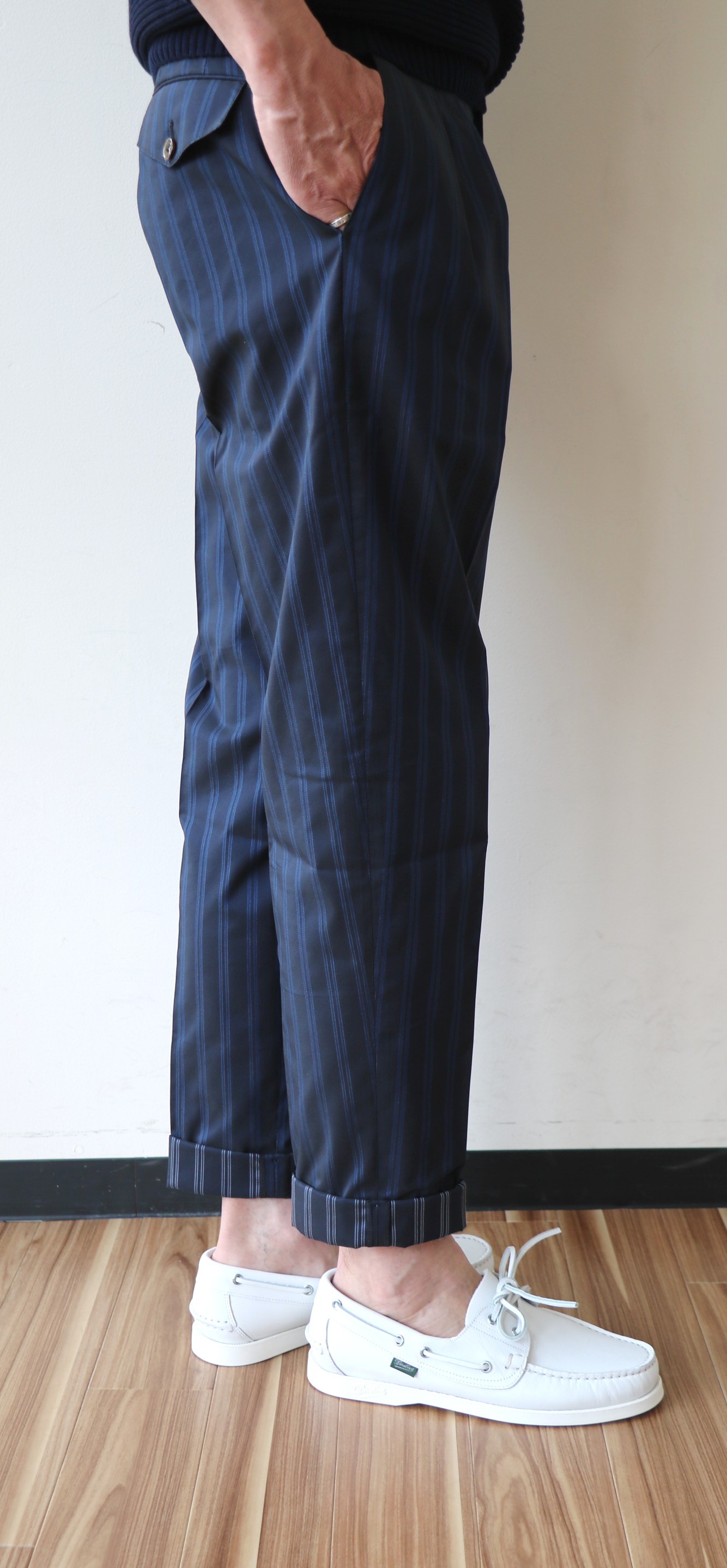 MODEL:「MAESTRO」CARROT fit ミッドナイトブルーストライプ柄パンツ