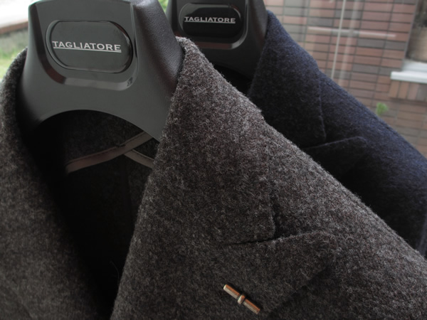 本日のご紹介は、「漢のつどい」でも話題になった【TAGLIATORE/タリアトーレ】。初めて袖に手を通された方は、ハイウエストからの絞込みのあるボディコンシャスな色気あるフォルムに惚れてしまいます。素材のの面白さも、このブランドの魅力。そして、展示会で飾られた多くのサンプルの中で、最初に手にとってしまったジャケットが、こちらです。