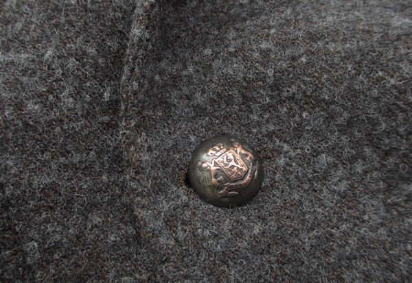 ブラウンのボタンはブロンズ、ネイビーはシルバーのメタルボタンをセレクト。ボタンを選ぶ楽しさ(大変ですけど…)もあります。もっと大変なのは、この複雑な生地と色の説明・・・オフレコです。