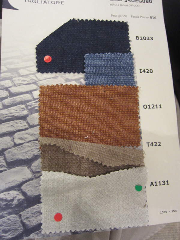 この写真だけで、ピンと来られた方は、よほどのクラシコ好きか、LEONの愛読者でしょう。昨年より話題の【TAGLIATORE(タリアトーレ)】。LEON3月号の150、151ページにも大きく紹介されていました。既にご存知の方も多いかと思いますが、敢えて説明させていただきますと、【TAGLIATORE(タリアトーレ)】は「リバイバル・プロジェクト」のドレス部門を手がけたピーノ・レラリオ氏がオーナー兼デザイナーを務める今最も注目されるブランドなのです。先日も2013年秋冬の展示会にお邪魔してきましたが、コレクションされている生地に釘付けです。あの懐かしい「ハリス・ツイード」を使ったクラシックジャケットやオッドベストが新鮮で、モダンに見えてしまうのは不思議です。