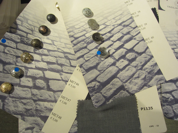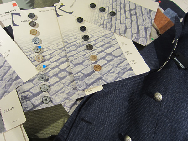 モデルの他に釦を選ぶことが出来るのも、楽しみの一つです。同じ生地でも釦一つで、雰囲気が変わるほど重要なパーツです。