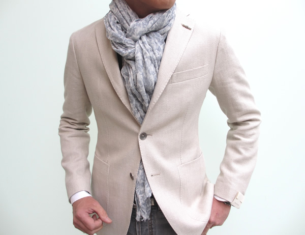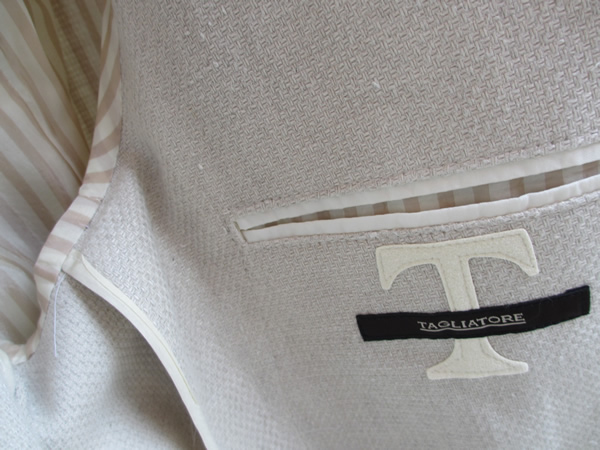 こちらの生地は雑誌媒体などのプロモーションに使っている【TAGLIATORE(タリアトーレ)】を象徴するリネン・コットンのホップサック。ネイビーをダブルブレスト(入荷済み)、オフベージュをシングルでセレクトしております。