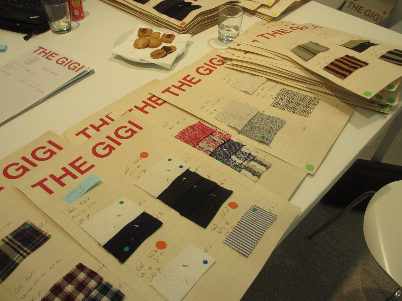 GIGI(ジジ)のショールームです。現在は仮で、近いうちに引っ越されるみたいです。PITTIのブースには、特徴のあるものが展示されていましたが、さすが商談スペースのショールームにはベーシックなアイテムが揃っています。