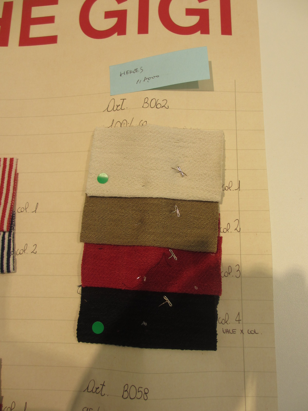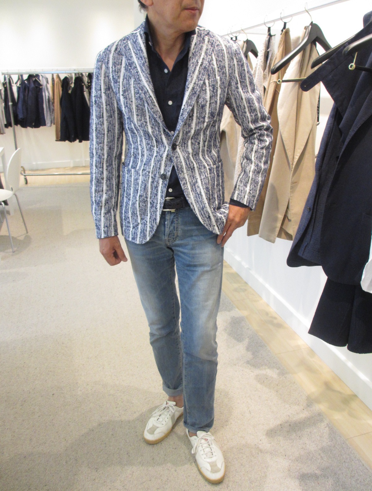 展示会でのセレクトは、こんな感じです。ジジ本人から直接、生地のレクチャーを受けたのですが、なんせイタリア語。言葉が通じれば、もっと感動したはずです。でもモノを見れば、彼の服に対するスタンスや情熱が伝わってきます。今度は、その感動を売り場で伝えていきます。