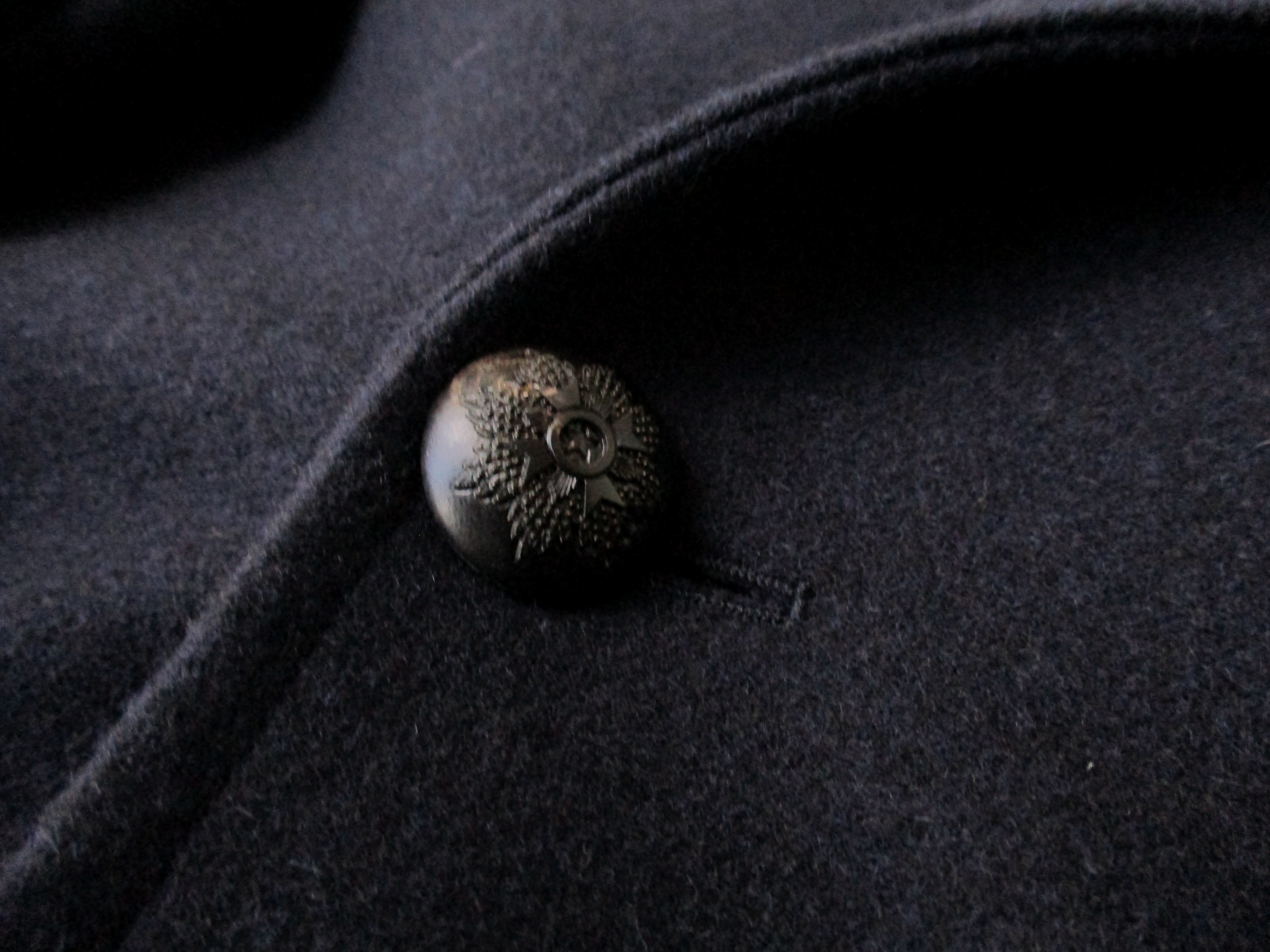 ウール100%の綾織りは素朴な表情です。大きめな釦のあしらいやステッチワークもPコートのようなスポーティーさ。色もネイビー。重さを感じさせない、気楽に羽織れるコートです。