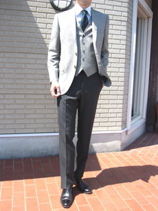 伊ANGERICO社のSUPER100’sを使用したスリーピース使用のスーツ。