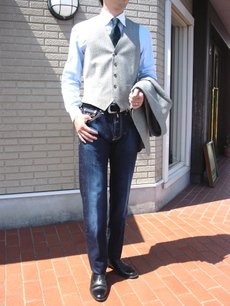 結婚式や2次会などのパーティーごとで、アイテムを組み替えて使うのも良し。ジャケットを脱いだ時でも様になるので、カジュアルにジーンズを合わせるのも良し。自在に使える便利さがいいですね。