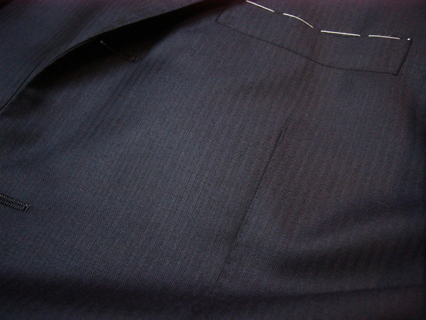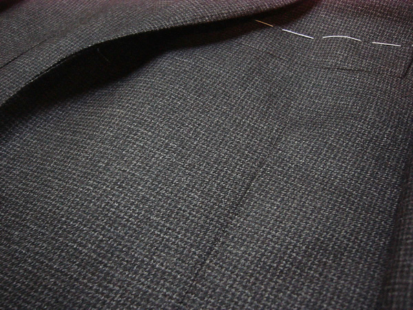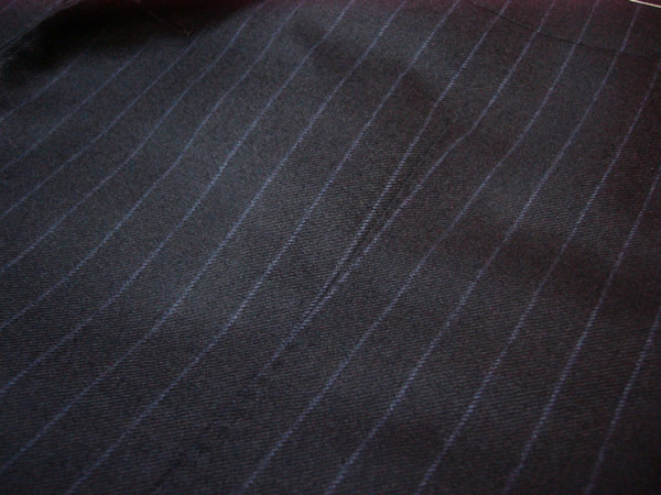 ただ、生地の表情は全く違っていて、こちらは表面に光沢があり、細いピッチのヘリンボーン柄のストライプが入り、モダンでシャープな印象を与えます。