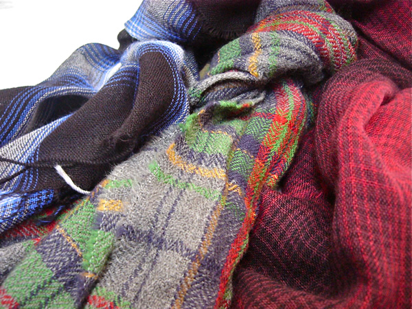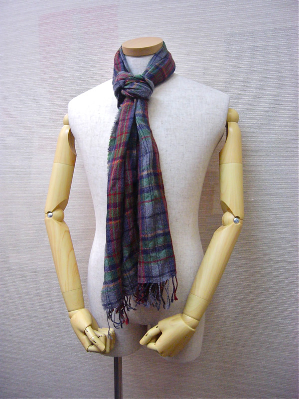 ウール100%生地で、ストールのような軽い雰囲気のあった上の2つとは異なり、防寒仕様のマフラーです。