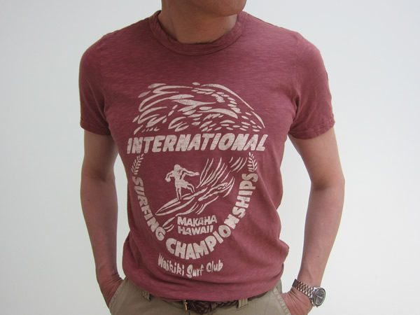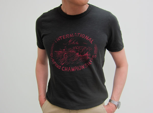 スラブ織りとでも言うのでしょうか。意図的に太い部分を作った糸を混ぜ込むことで、かすれた表情に。作務衣を思わせる日本的な雰囲気を持ったTシャツです。