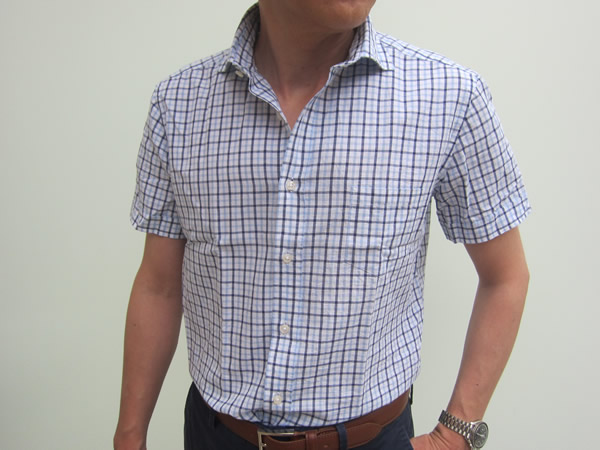 イタリアのシャツファクトリーで半袖のパターンを持っているところは、多くはありません。フィナモレは、全て長袖ですし、バルバやマリオ・ムスカリエッロにしてもカプリシャツまで。それも5分か7分袖です。基本的にドレスシャツは、下着。上着が汚れない為に着るものですので、長袖以外は必要ありません。カジュアルシャツも、長袖をご提案してきましたが、今回、【CIT luxury(チット ラグジュアリー)】から半袖をセレクトしてみました。