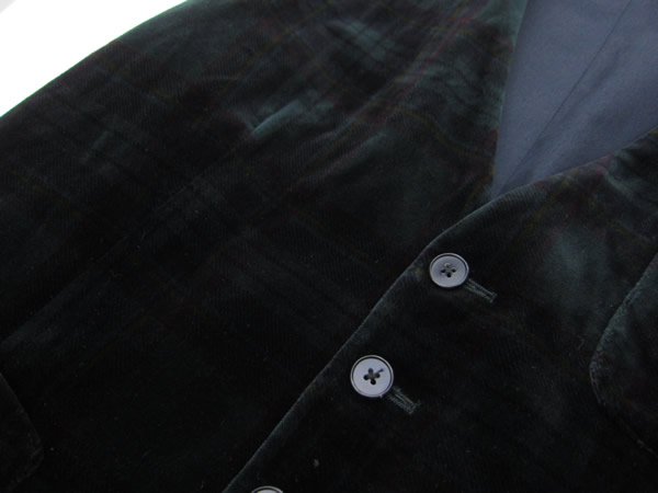 遠目で見ると無地に見えますが、実はブラックウォッチのタータンチェック柄。ジーンズやチノパンツにラフに羽織っても良し、クリスマスなどのイベントにアクセントとしてジャケットのインに重ねても良いでしょうね。持っていると得をしそうな【LARDINI(ラルディーニ)】の別珍ジレです。