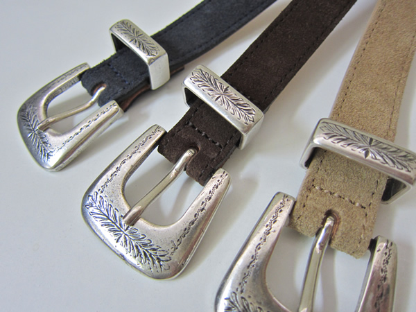 インパクトあるウエスタン調のデザインも、2㎝という細幅で仕上げると角が取れたようにスタイリッシュになります。革も非常に柔らかく、長めのサイズで合わせ、プンターレを垂らすのも◎。