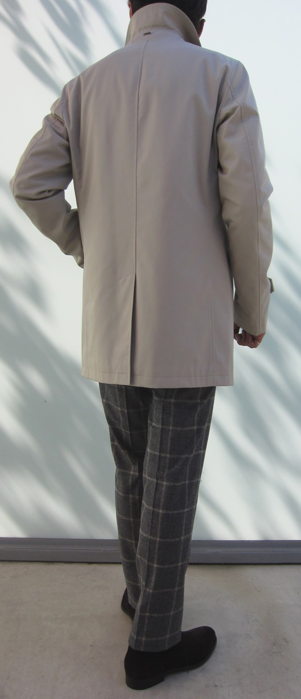 ニットにブルゾン感覚で羽織るのに、丁度良い着丈です。もちろんスーツやジャケットに羽織ることもできます。季節の変わり目によくある天候の変化にも対応でき、もともとレインコート、ダスターコートとしての役割を持つポリエステル65%、コットン35%の「OXFORD」。以前はドライビングコートしても活躍したスポーティでエレガントなコートです。