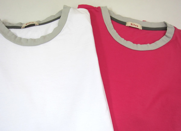 袖のリブが大きく、そのままでは七部袖のようになっていますが、基本は折り返して半袖としてきると良いでしょう。撮影では、全て折り返した状態で着用しています。