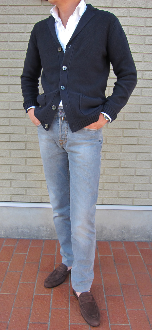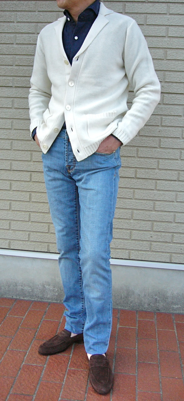 今回ご紹介するのは、去年から継続している定番のジャケット型カーディガン。新デザインではありませんが、生地は新たに開発された「AIR COTTON」を使用しています。