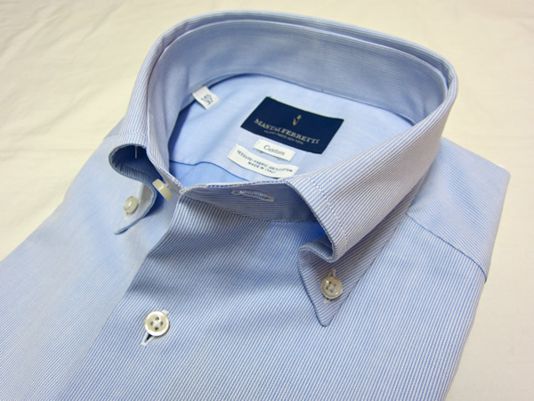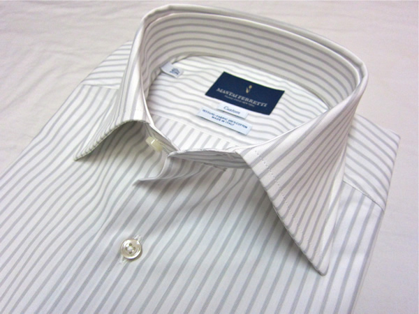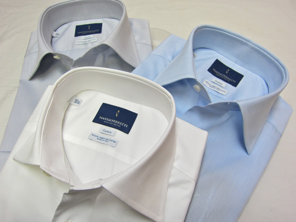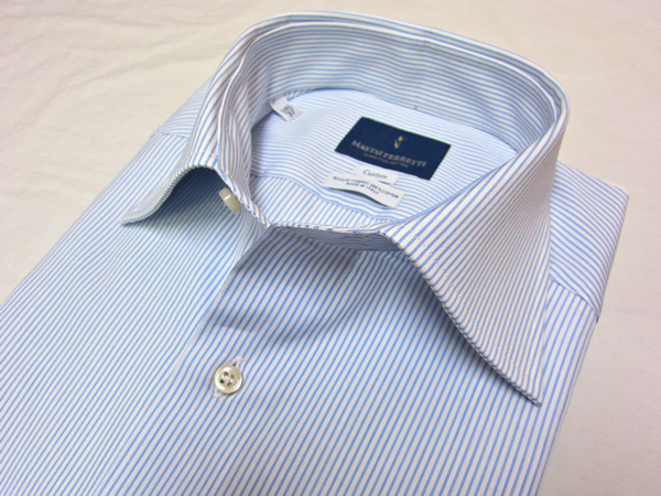 独自の襟型と、背ダーツを入れた細身のシルエットが大人気。イタリアメイドのシャツ専業ファクトリーブランド、【MASTAI FERRETTI】の入荷です。
