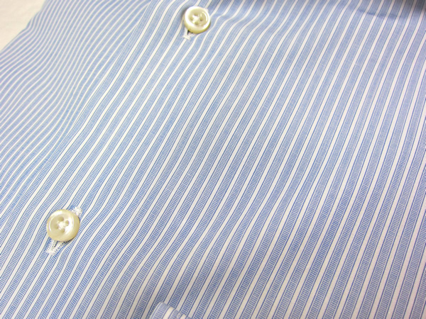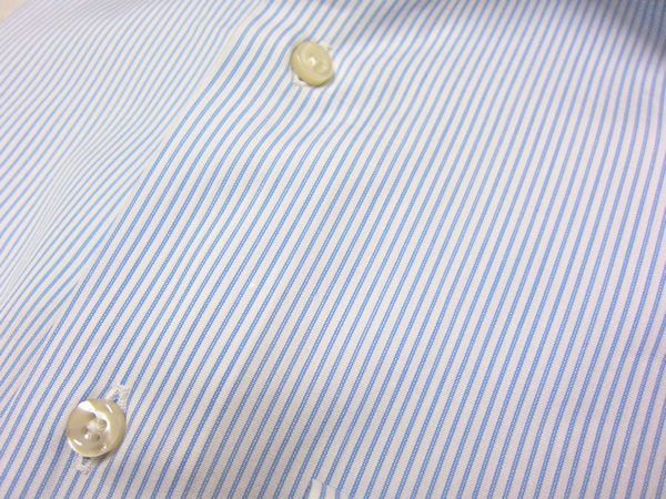 柄は、オーソドックスな細畝のストライプ柄です。春夏仕様ということで、カラーは明るいサックスブルーにしました。