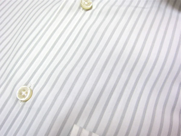 一見すると無地なのですが、よーく見ると細かなドビー織りのヘアラインストライプが施され、シンプルな無地シャツにささやかなアクセントを加えています。